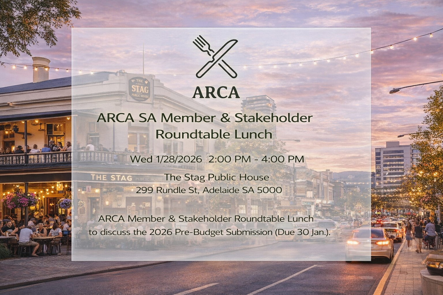 ARCA Member & Stakeholder Roundtable Lunch to discuss the 2026 Pre-Budget Submission (Due 30 Jan).